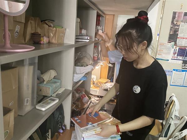 从地面卫生、床铺整理、桌面摆放,教官们耐心讲解,亲身示范,让新生们对寝室内务标准有了更清晰的认知。胡墨智力强调寝室违规违纪,她提醒新生要遵守公寓规章制度,不使用大功率电器、不私拉电线,共同守护寝室这个小家。新生们认真听,用心学,很快掌握了整理宿舍内务技巧,快速整理了起来。