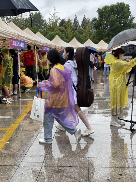 21管弦流行音乐制作班学生王奕菲说,虽然雨天相伴,但却没有减少我对大学生活的向往与期待。大学的生活对于每位新生都是新鲜的,希望大家在大学的生活中能够过得充实又有意义,积极进取不要低沉堕落,为人生之路夯实基础。