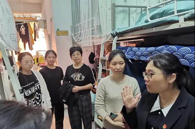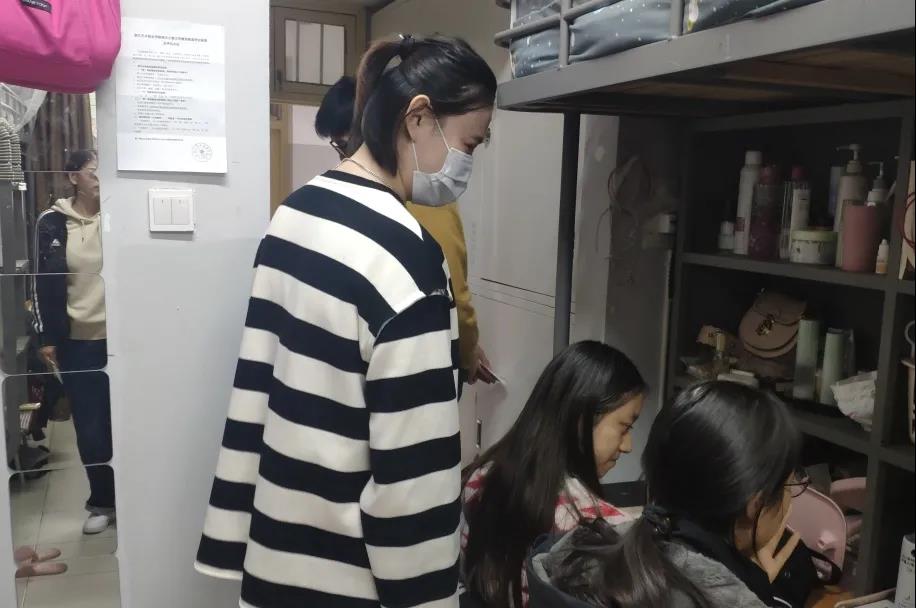 老师们的到来让同学们倍感温暖,走访中,每一位老师都认真查看学生宿舍卫生和用电安全情况,关怀学生日常生活情况,对可能存在的安全隐患进行检查和督导,加大安全隐患排查力度。同时,各位老师对卫生整体水平好、寝室文化突出的宿舍进行表扬。