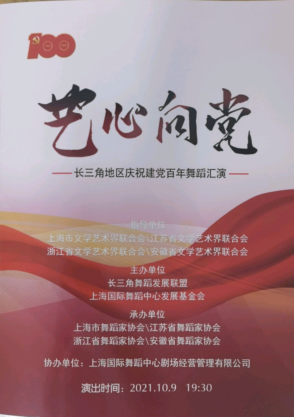 10月9日,“艺心向党”——长三角地区庆祝建党百年舞蹈汇演在上海国际舞蹈中心举行。我校舞蹈系原创剧目《东流山上杜鹃红》作为浙江的4个参展剧目之一,与上海、江苏、安徽等地的14个专业院团、高校同台展演。