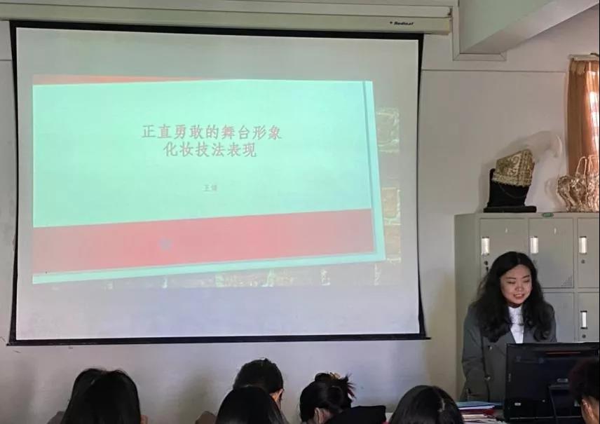 王婧的《化妆设计与体现》课程,以《清溪瑶》红色剧目创作为背景,围绕正直勇敢的舞台形象的化妆技法,使学生们在深入解析《清溪瑶》主人公郑文斌的性格与经历的过程中,了解战火纷飞的抗日年代,理解为了民族大义而勇于牺牲的精神,通过榜样的力量培养学生们的爱国情怀。