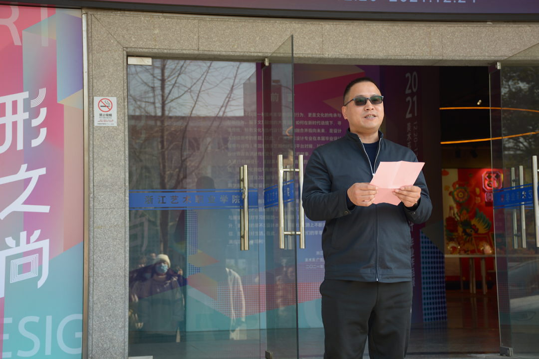 ▲广告艺术设计专业带头人叶峰泉主持开幕式