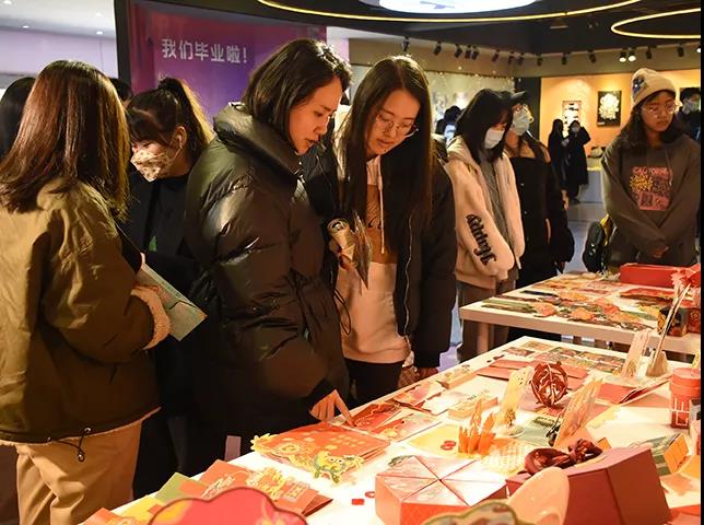 展览由2019级广告艺术设计和2020级广告设计与制作3+2班共78位同学精心设计与制作,充分展现了广告艺术设计专业学生的专业能力、创新思维和责任意识,展览现场热闹非凡,精致有趣的各类视觉延伸品吸引着观众的眼球,师生们热情地为观众讲解这些产品背后的文化内涵与设计。
