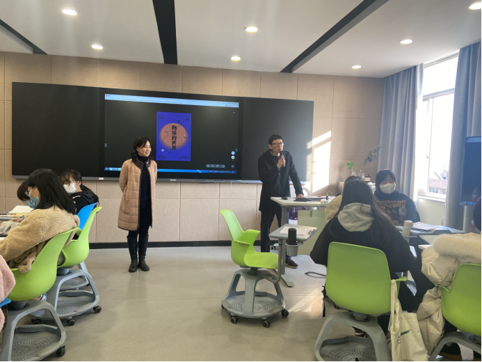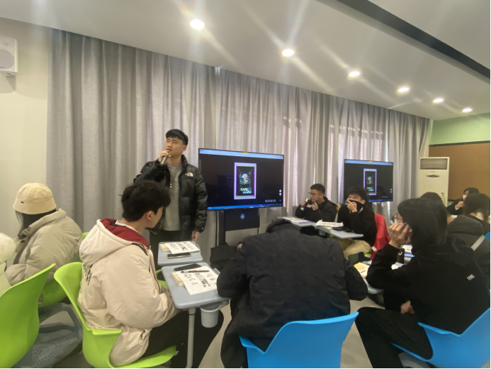 12月6日下午,社会科学部副主任、《马克思主义基本原理》课程主讲教师胡卓群在8707智慧教室开展《“我眼中的马克思主义”海报设计》实践教学活动课,课上邀请到美术系广告设计专业带头人、视觉传达设计专升本班班主任叶峰泉副教授作专业点评,美术系2021级视觉传达设计专升本班39名同学进行原创海报设计作品展示。