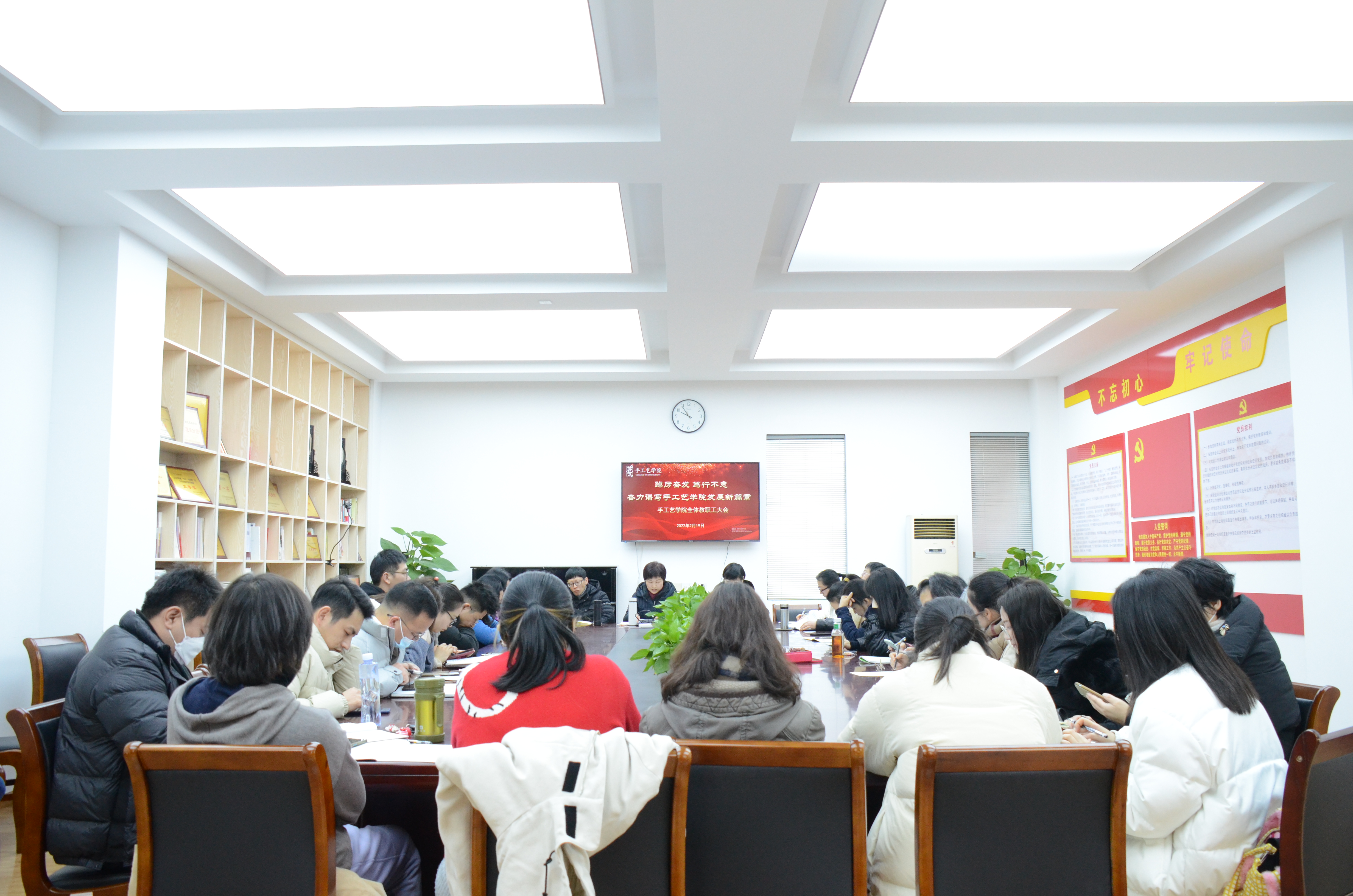 2月19日,手工艺学院全体教职工齐聚学院,分别召开全体教职工会议、教研室主任会议、班主任会议,紧锣密鼓地统筹部署新学期开学工作。手工艺全体教职工以生龙活虎的干劲,气吞万里如虎的精神,共同开启新学期新篇章。