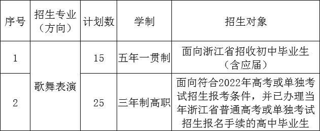 以上招生考试的具体要求详见《浙江艺术职业学院2022年高职提前招生章程》、《浙江艺术学校(浙江艺术职业学院附中)2022年中专及五年一贯制招生简章》