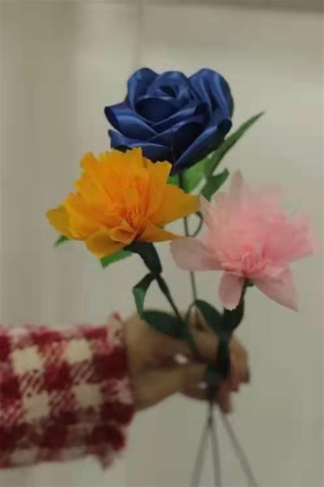 在活动中,同学们积极发挥专业优势,与老人共同完成手工花制作,拉近了彼此的距离。