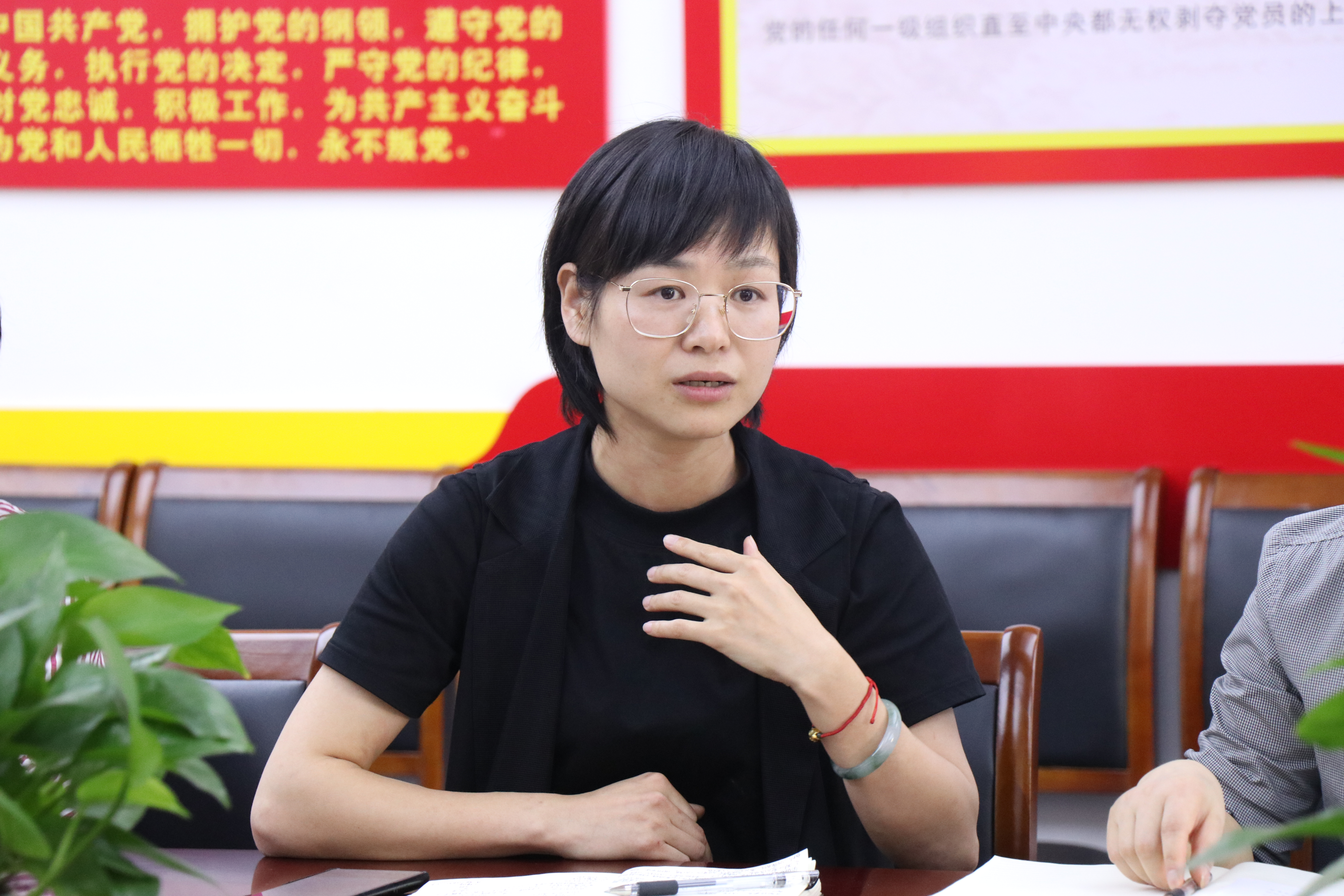 会上,教工党支部书记叶峰泉汇报支部在日常学习、党日活动、党员发展等基本情况,紧紧围绕“红色根脉”主线,持续发力,将专业与党建紧密融合,发挥好党建引领作用。