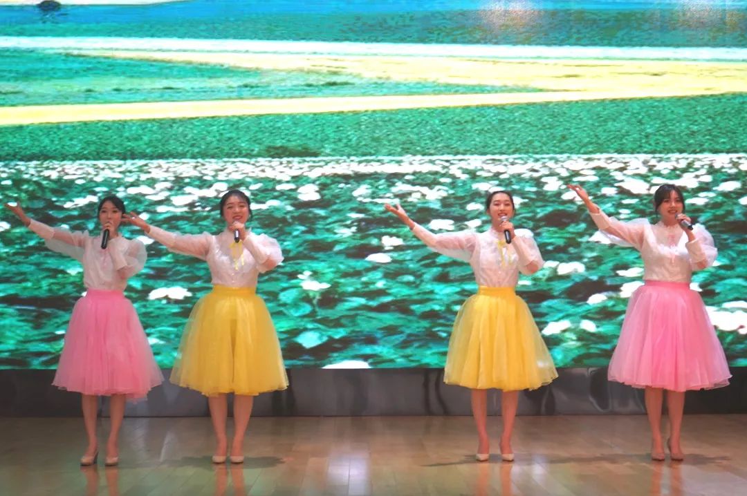 20歌舞班沈娅如、潘颖欣、蔡依娜、叶馨漪同学带来的歌曲《田野的春天》,他们用歌声描绘着一望无际的田野,悄然绽放的高雅美丽的野花,欢快轻松的旋律中,春日的暖意缓缓流进每个人的心田。