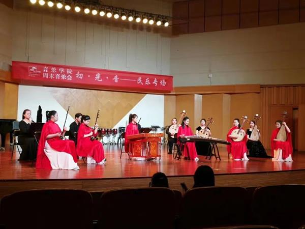 民族室内乐《花朝月夕》由19民乐戏音一贯班学生集体演奏,作品采用了广东音乐“汉宫秋月”的音乐素材,以细腻柔美的音乐风格,唤起人们对“花晨月夜,良辰美景”的遐思与憧憬。