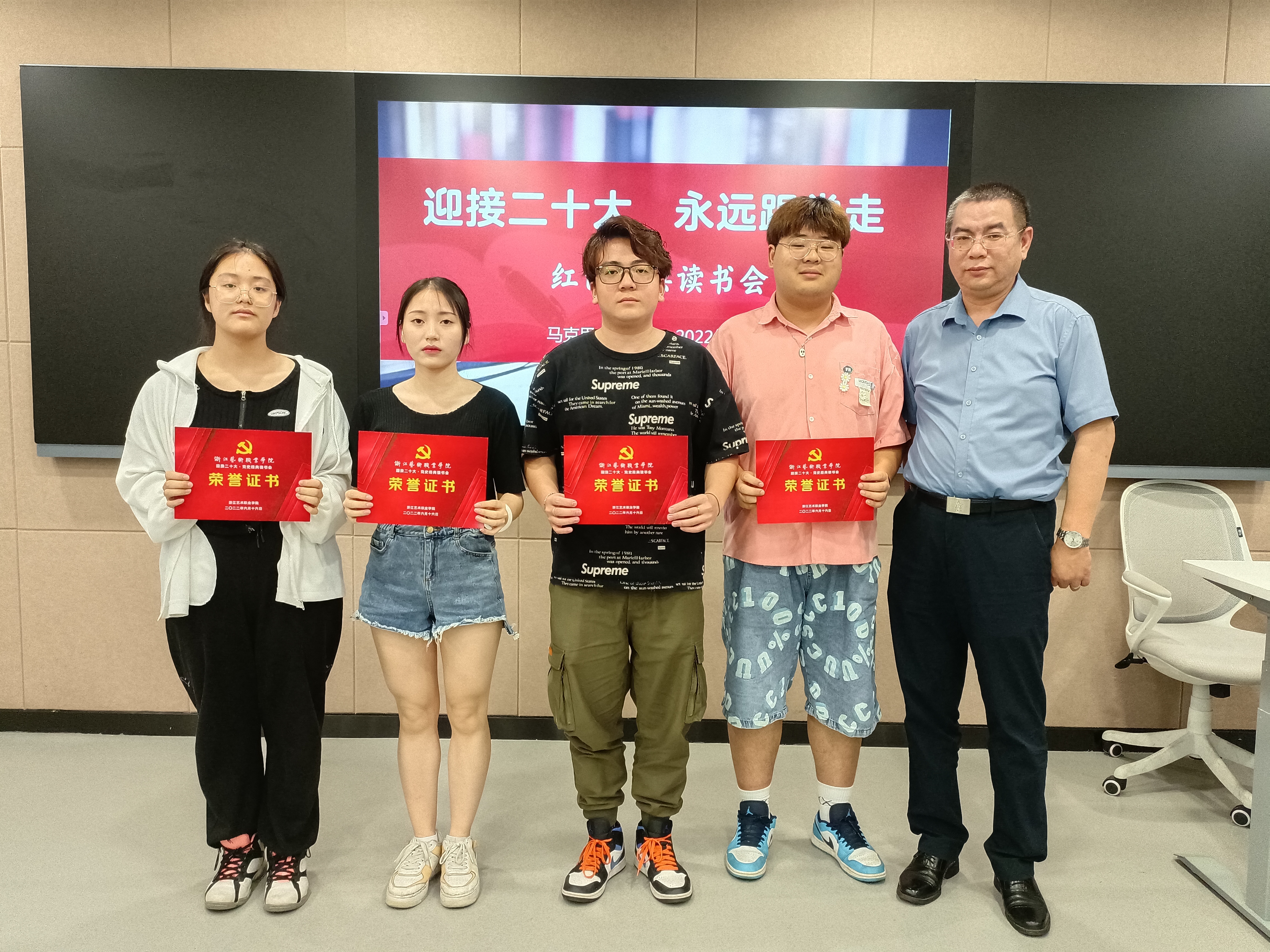 6月16日晚,浙江艺术职业学院“迎接二十大·永远跟党走”党史经典读书会在8707智慧教室举行。读书会以歌颂伟大建党精神、弘扬传承红色精神、传播中华优秀传统文化为主旨。活动前期,马克思主义学院组织全校高职以及本科班一年级学生读一本红色经典书籍、写一篇读后感,让同学们通过品读红色经典著作,来感悟时代变化,体味人生价值。同时,通过遴选优秀读书心得,进行分享交流。马克思主义学院直属党支部书记、副院长陈毅,副院长胡卓群以及基础教研室专兼职教师参加活动。