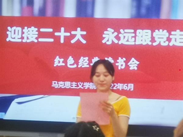 在分享过程中,同学们饱含深情地分享着自己的读书心得,有所思、有所悟、有所获,有情到深处热泪盈眶,有徜徉红色之河时的心灵涤荡。通过对于《共产党宣言》《红星照耀中国》《红岩》《青春之歌》《红日》《创业史》《山乡巨变》《保卫延安》《林海雪原》等一大批红色经典著作品读,同学们感受了其中所蕴含的精神价值传承,大家纷纷表示要自觉赓续红色基因,守护来之不易的和平年代和幸福生活,把小我融入大我,追寻崇高的人生价值,争做强国青年。