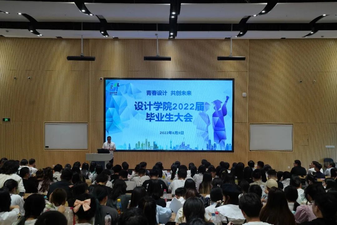 6月9日中午,“青春设计·共创未来”设计学院2022届毕业生大会在阶梯二召开。浙江艺术职业学院院长黄杭娟,设计学院领导班子、教研室主任、毕业班班主任、组织员、辅导员以及268名毕业生参加。大会由设计学院党总支专职副书记顾才铭主持。