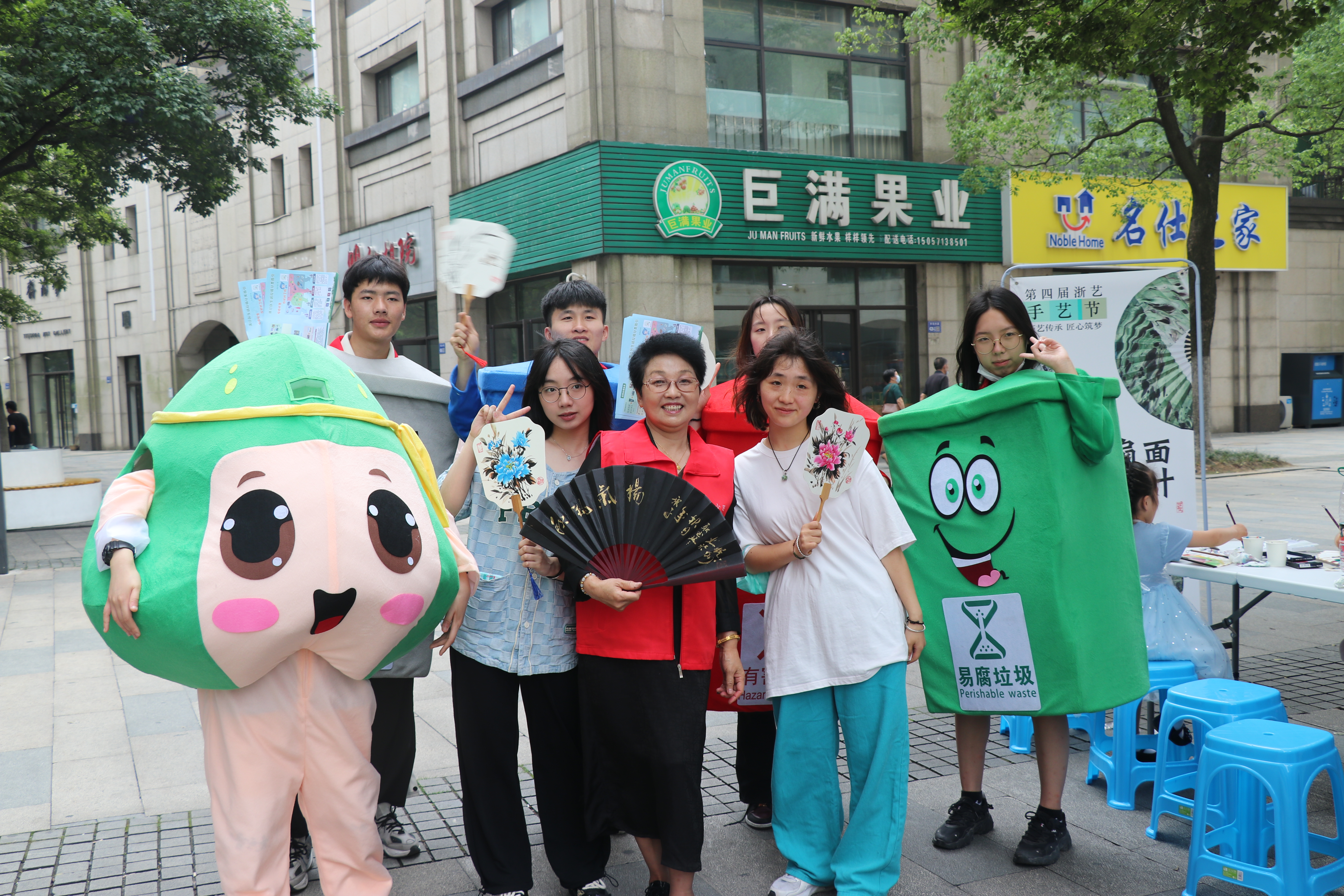 艺小匠们给现场体验者分发绘画工具和扇子,鼓励大家进行自由作画。在长方桌上,男女老少体验者对着空白的扇子聚精会神地描绘,有的画花卉,有的画粽子,有的写祝福,将一幅幅充满端午气氛的画作呈现在一把小小的扇子上。家住社区的耿老师笔法行如流水,扇面作品栩栩如生,一口气创作了四五把精美别致的扇面画。