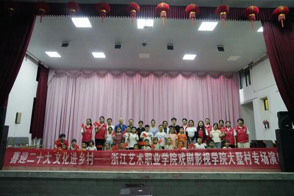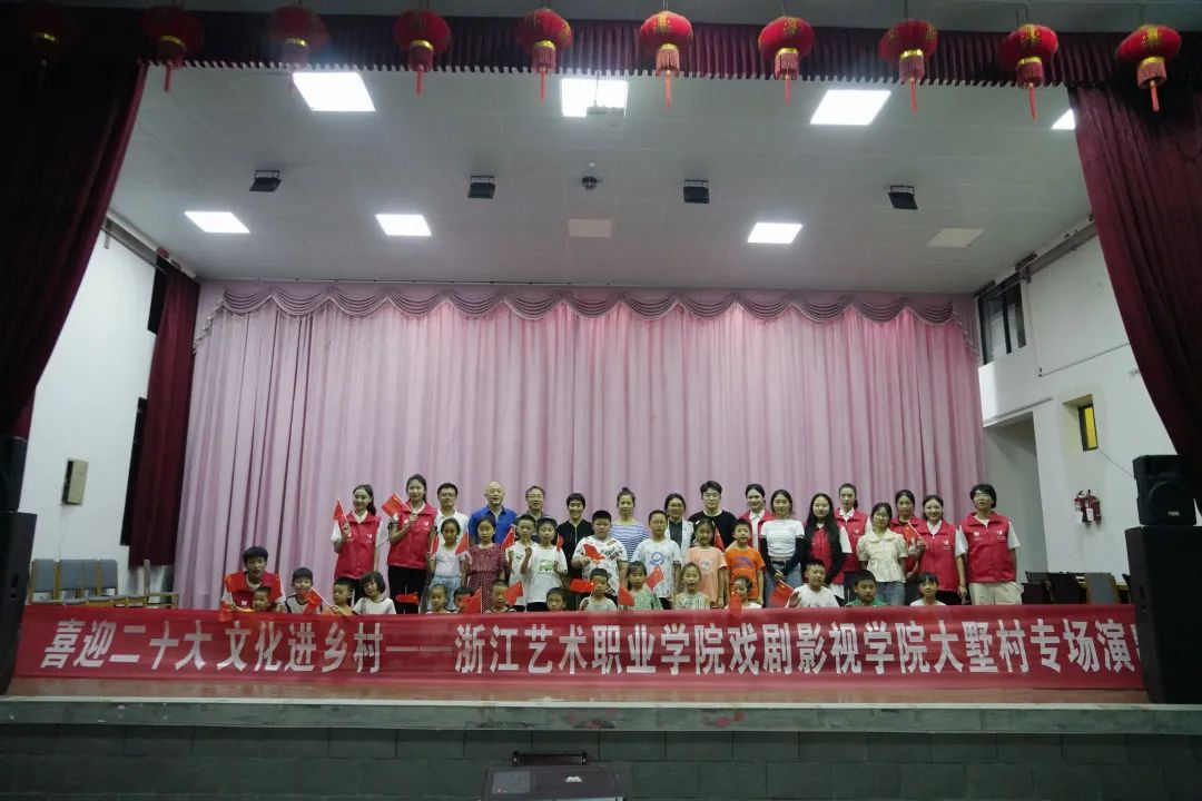 现场进行了“浙艺青年说”理论宣讲,在大墅村留下了浙艺学子坚定有力的青春之声。全体演员们与村民们齐唱《没有共产党就没有新中国》,用歌声表达对党的无限热爱,对祖国的美好祝愿。