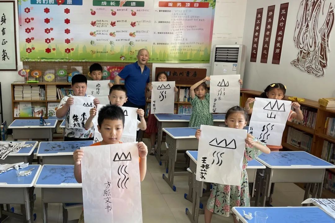 我校基础教学部教师白云晖为大墅村的孩子上了一堂生动的书法课,从学习正确握笔开始,到一笔一划在宣纸上写下自己的名字。对于很多孩子而言,这是人生当中第一次接触书法,纸上歪歪扭扭的的笔画印出的是梦想的形状。“儿童之家”创始人、敬业奉献“中国好人榜”获得者方平尔说:“谢谢你们,这是真正的梦想课堂,希望你们常来!”