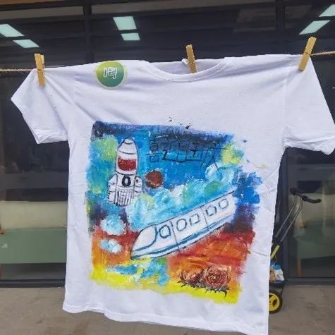 同学们用手中的彩笔在白色T恤上描绘出自己心中美丽的祖国,表达自己对伟大祖国的热爱之情和美好祝福。