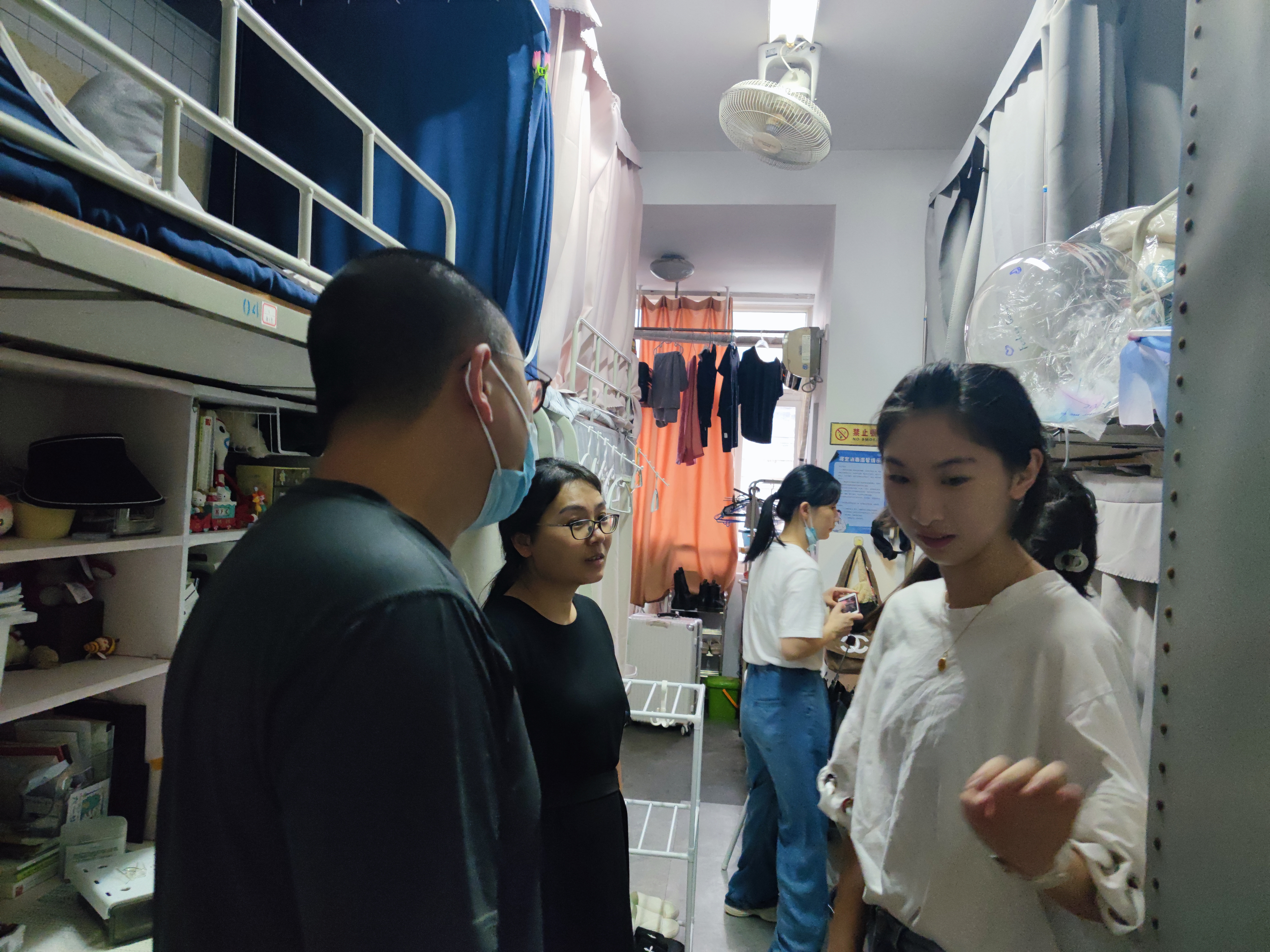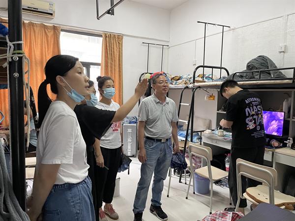 9月13日下午,学院党总支书记彭云波、常务副院长郑怡文、党总支专职副书记许瑛及全体班主任、辅导员,走访东冠校区和立志园学生寝室,对同学们的到来表示热烈欢迎,在亲切交流中了解同学们的入住情况和实际需求。