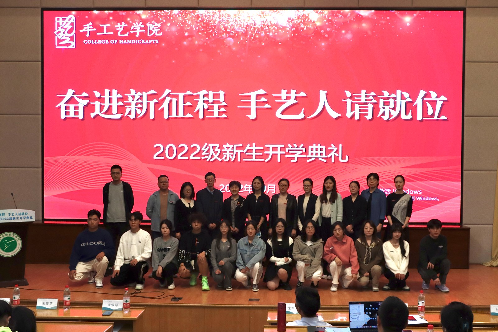 各教研室主任与班主任们上台与新生们见面,并寄语新生们志存高远,怀抱梦想,脚踏实地,刻苦钻研,成为专业扎实、本领过硬的手艺人。