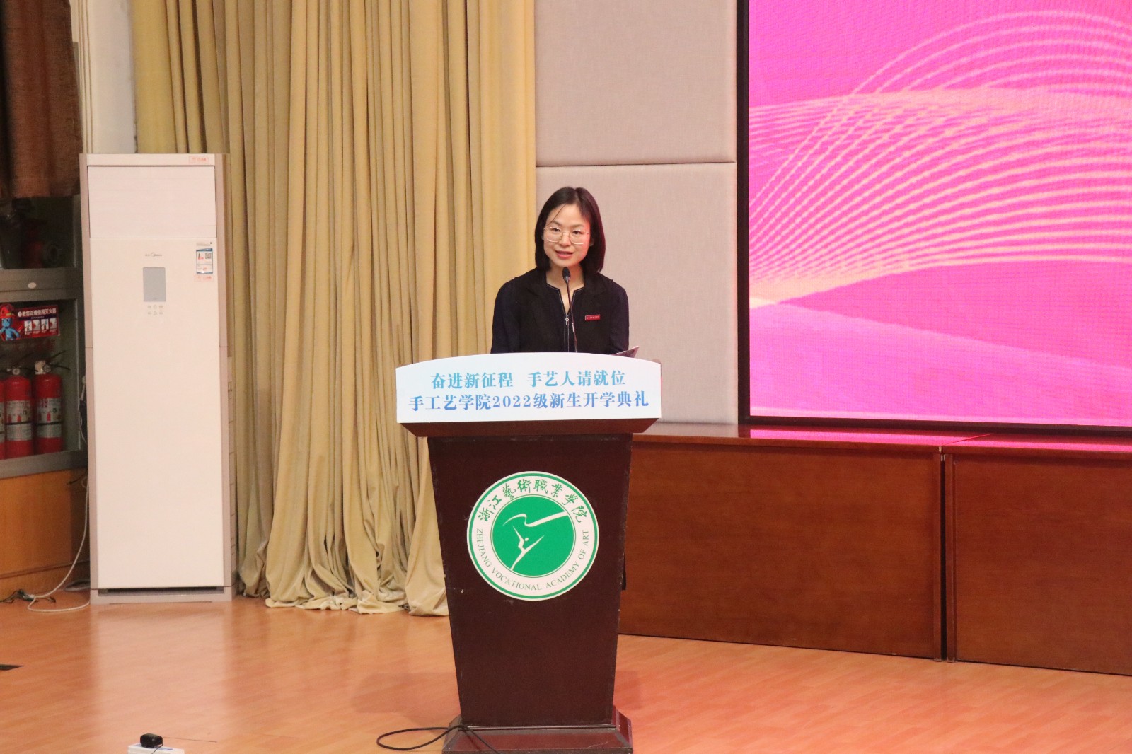10月24日,手工艺学院2022级新生开学典礼在图信报告厅举行。校党委委员、副院长沈军甫,手工艺学院全体教师及2022级新生参加。典礼由手工艺学院党总支专职副书记王筱芽主持。
