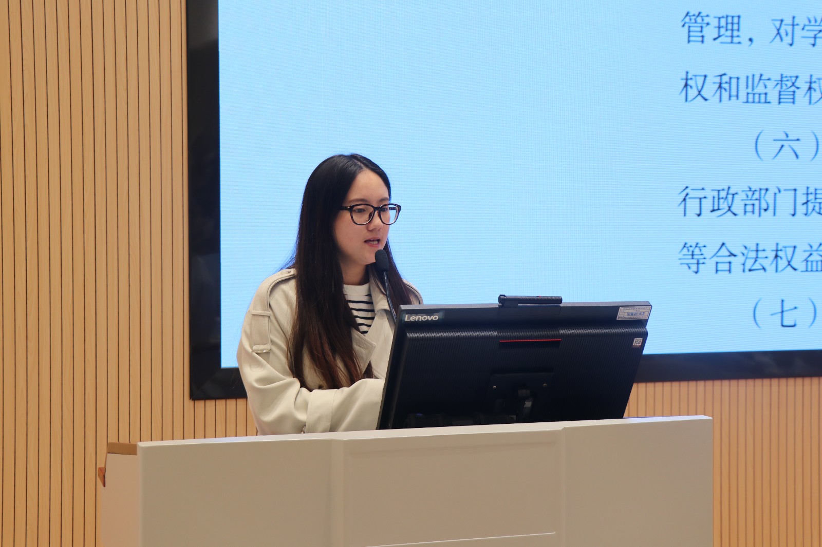 为了营造良好的校风学风,胡墨智丽为同学们细致讲解了奖励资助、日常管理、学生考勤等方面内容,通过违规违纪典型案例对全体新生进行警示教育。