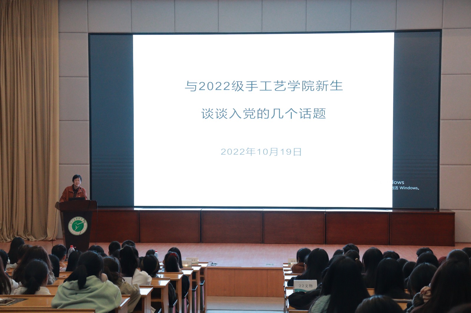 10月19日下午,手工艺学院在图信报告厅开展第一场2022级新生始业教育。手工艺学院党总支专职副书记王筱芽,组织员钱杏芬,学生党支部书记、辅导员胡墨智丽,团总支书记、辅导员戚幸怡,2022级全体新生及班主任参加大会。