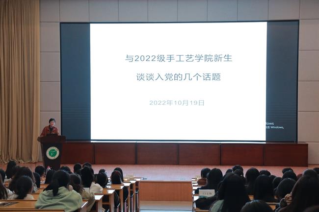 钱杏芬向全体新生详细解读了入党的相关流程,并通过介绍优秀党员校友,鼓励大家向优秀党员校友学习,筑牢信仰基石、传承红色基因,踔厉奋发,做有责任有担当、有胸怀有情义、有冲劲有激情的浙艺手艺人。