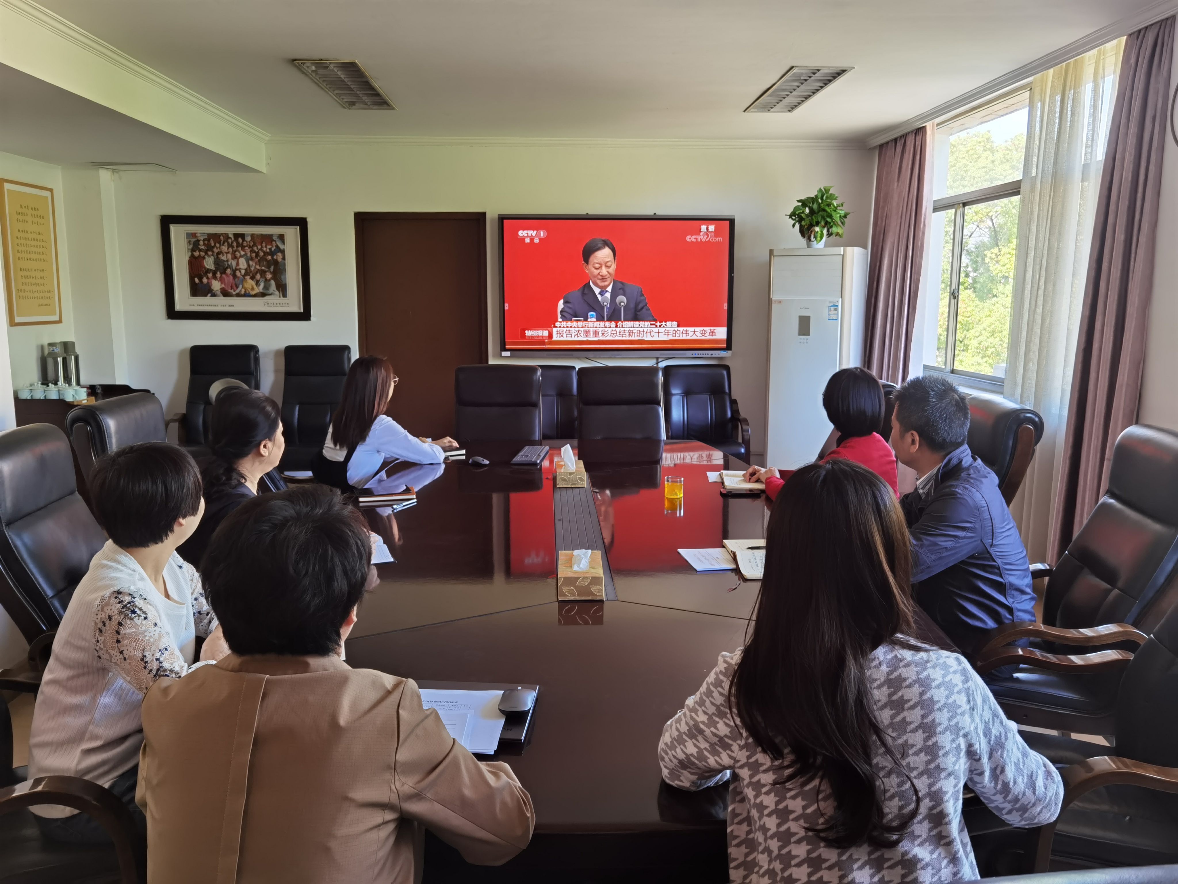 为深入贯彻落实党的二十大精神,10月24日上午,办公室党支部组织全体党员集中收看中共中央介绍解读党的二十大报告新闻发布会。