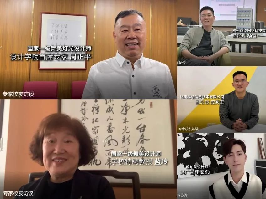 设计学院首席专家周正平,特聘教授蓝玲,杭州点染网络科技有限公司总经理杨霆,杭州群核信息技术有限公司副总裁应秀王以及2014级广告艺术设计与制作专业校友李安东也通过视频表达了对新生最诚挚的祝愿。