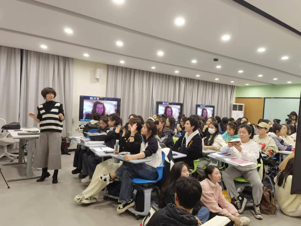 为进一步加强国际交流合作,开拓学校师生艺术方面的国际视野,加强艺术教育前沿动态的熏陶,11月17日、18日,办公室(外事办)联合音乐学院邀请美国迦太基学院艺术和人文学院院长、音乐剧系主任、音乐剧声乐演唱教授科琳·奈斯进行第一期线上讲座。讲座采取线上线下同步直播的方式进行,音乐学院和戏剧影视学院近六十位师生在学院8707智慧教室集中观看讲座。讲座由中国第一位音乐剧“文华大奖、文华表演奖”获得者、音乐学院音乐剧专业学科带头人章小敏担任翻译和课程指导。