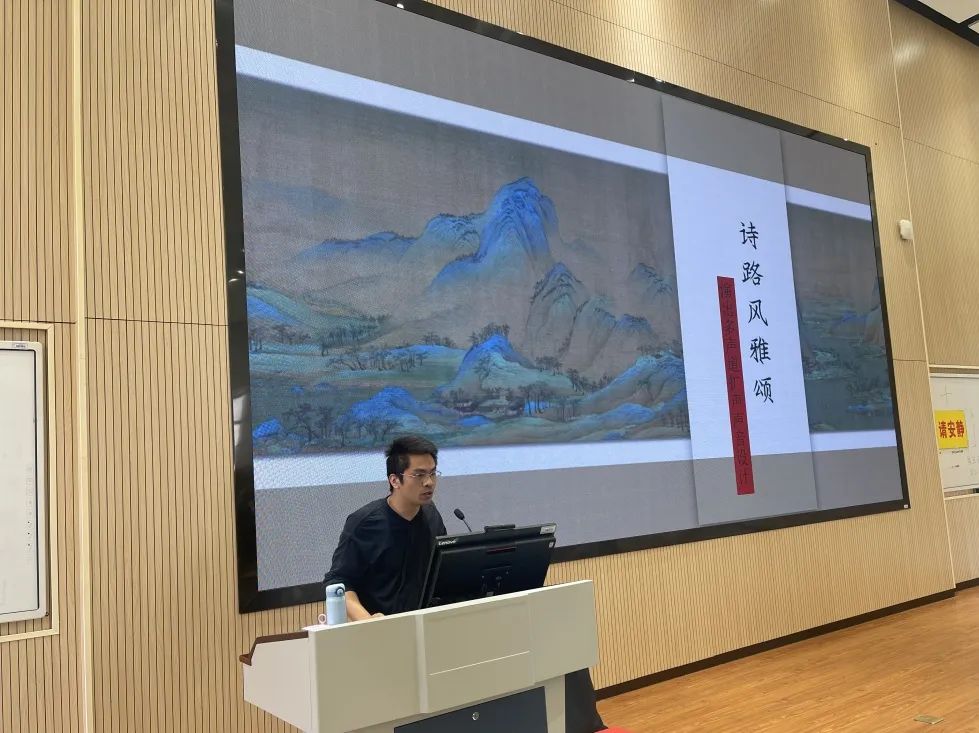 黄德聪从阐释多声道扩声声音设计的概念出发,为同学们介绍了设计项目和设计场地的现状,厘清了声音设计的思路,详细讲解了声场设计、音箱分布及整个系统的设计方式。本次演出以“宋韵”“诗路”为核心主题,通过三个篇章,六大精神实质,多种艺术表达,传递爱国、创新、包容的诗词文化,风雅精致的古典审美。