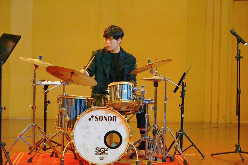 求艺之路漫漫。为了追逐心中的爵士梦,胡珂帆在专业老师的指引下,先后跟随浙艺留美归国打击乐青年教师李根学习小军鼓,英国传奇爵士鼓演奏家Clark Tracey、伯明翰皇家音乐学院爵士系副主任Andrew Bain、爵士鼓演奏家教育家Winston Clifford等老师学习爵士鼓。胡珂帆回忆道:“在浙艺的六年对我来说是一段珍贵且美好的时光,我的专业老师同时还是浙江省打击乐学会秘书长,可以说他是我的专业老师,又不止是我的专业老师,他对我方方面面都多有关心,教学时非常有耐心而且专业性非常强,在学业规划上也让我少走了很多弯路。也特别感谢母校给了我充分的专业发展机会和学习锻炼的平台。”胡珂帆回忆浙艺生活时感叹道。