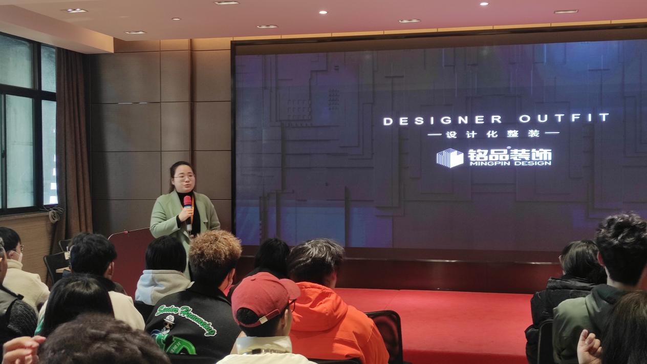 铭品装饰商学院培训师何广春为同学们生动介绍了铭品“真诚、专注、拼搏、创新”的企业文化,分享了“铭品十二维度设计法”、优秀团队“铭品设计之队”的设计方法,并针对设计及施工过程中的难点、关键点进行讲解,同时勉励同学们要努力学好自身专业知识,提高专业素养。同学们积极互动,现场气氛十分活跃。