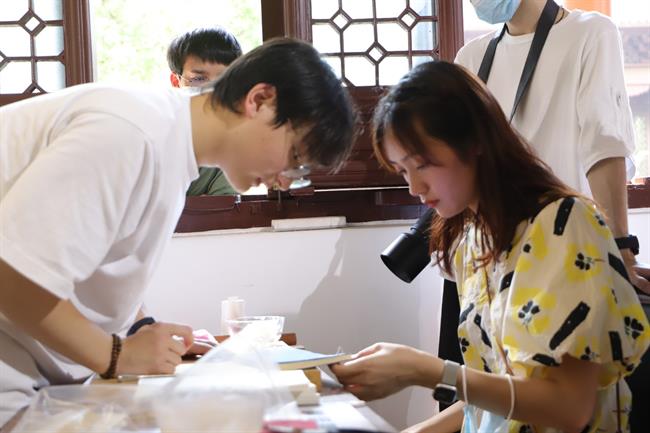 讲解导览有本领。“艺小匠”化身“手工艺社区学院”小老师,开展非遗剪纸迎新春教学活动。“艺小匠”将古籍装帧带入宋韵杭州奇妙夜,现场展示讲解古籍装帧过程,让游客在一钉、一针、一线中感受宋韵文化的魅力。