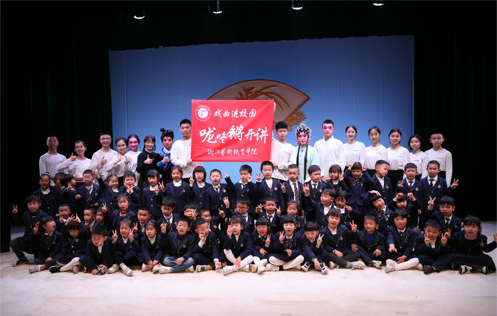 戏曲学院立足专业实际,将戏曲进校园工作作为推动专业创新发展,实践育人与传承传播中国传统文化相结合的重要载体开展活动,贯通传统文化命脉,讴歌伟大时代精神,唱响民族复兴大戏,通过将最经典、最具特色的剧种、剧目推广到中小学校,使传统戏曲文化的种子在浙江校园生根发芽。
