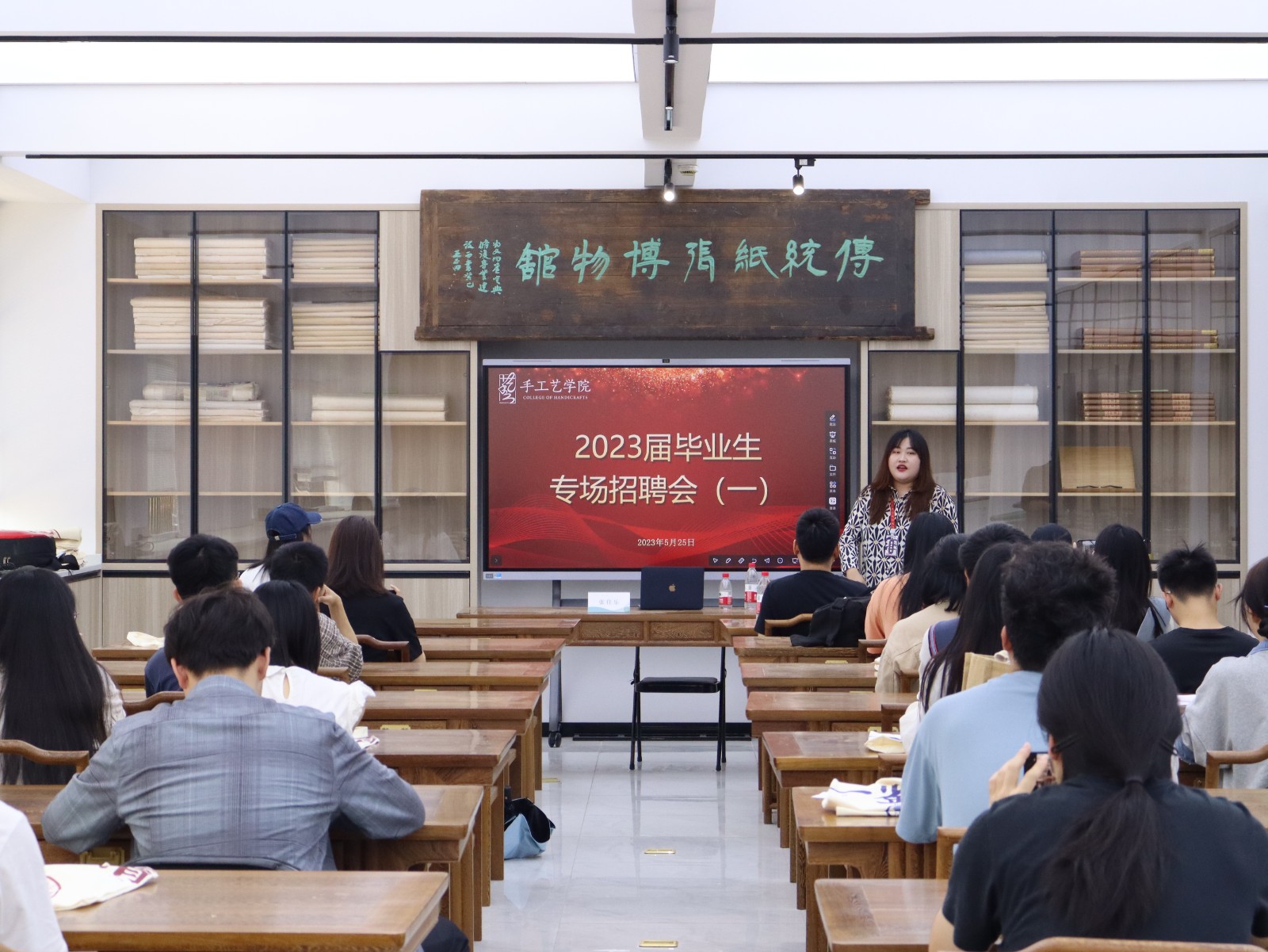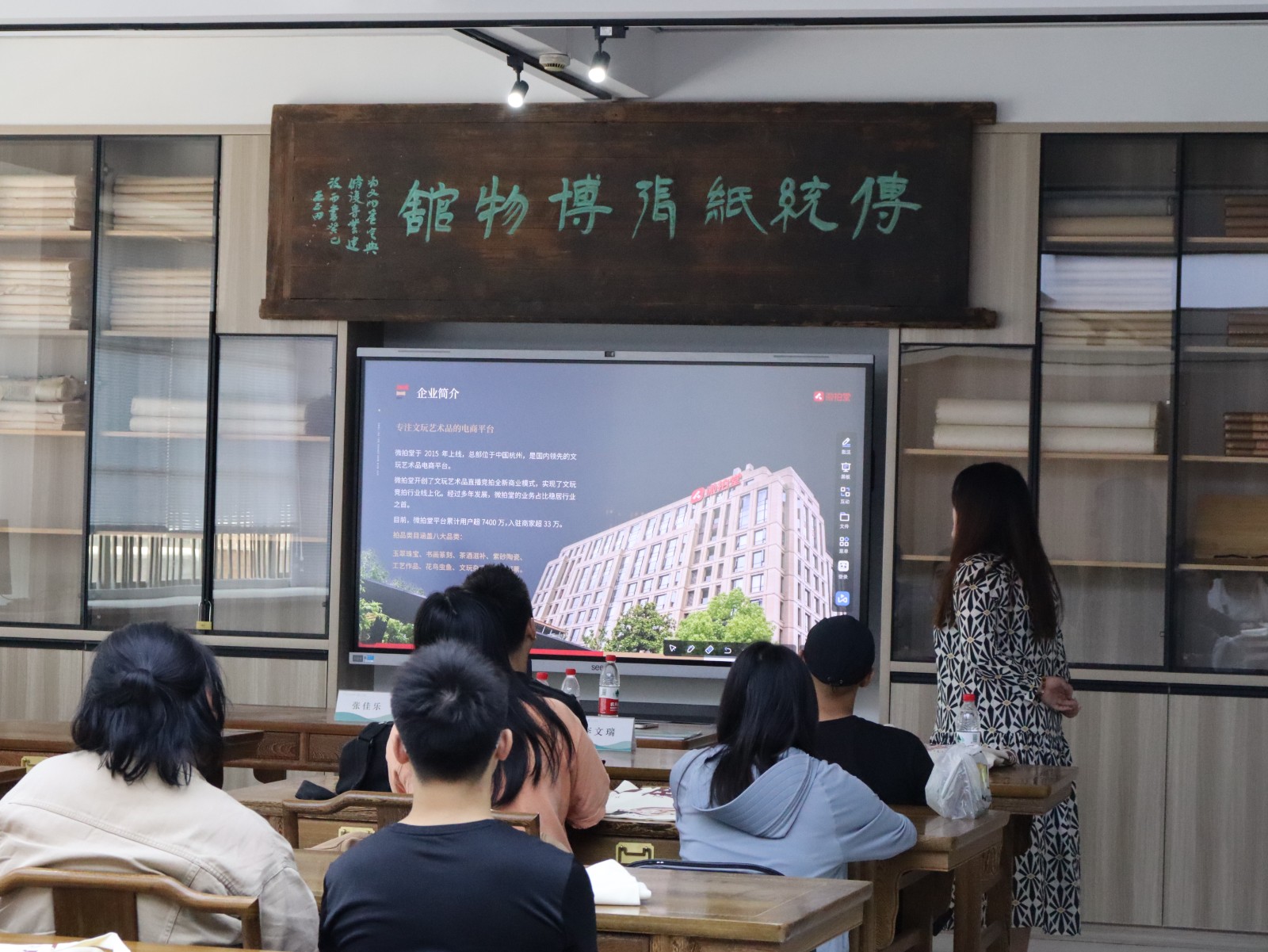 为进一步促进校企合作深度开展,创新人才培养模式,提高学生的综合职业能力,拓宽实习就业路径,大力培养社会发展需要的高素质高技能人才,5月25号下午,手工艺学院邀请杭州微拍堂文化创意有限公司进行专场招聘会。微拍堂鉴定评估部负责人李文瑞,资深鉴定师戴心梁,人力资源部负责人章雪柯,招聘主管张佳乐,手工艺学院20文物、21文物学生参加。
