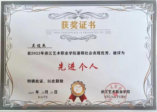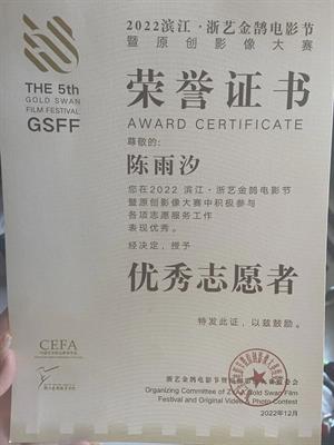 团支部志愿服务率达100%,全体成员积极参加校内外各项志愿服务活动,志愿者总时长达3260小时,人均服务148.2小时,8人荣获浙艺金鹄电影节“优秀志愿者”称号,2人获校级暑期社会实践“先进个人”荣誉称号。