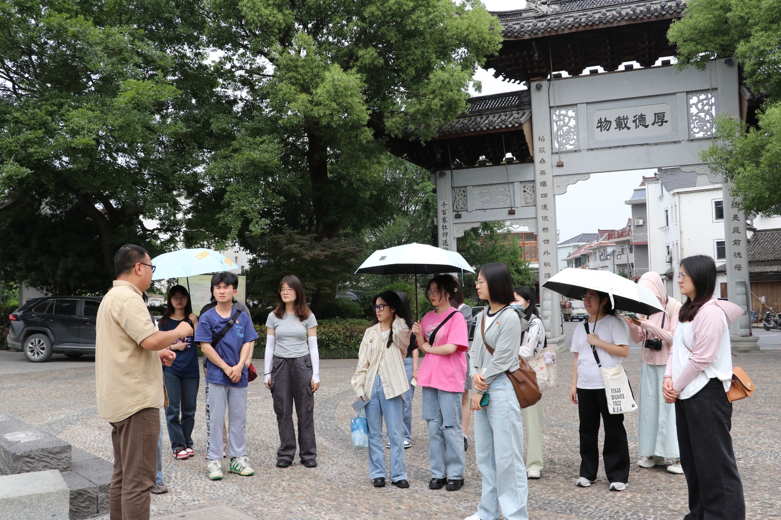 “深澳百匠艺术文化村项目”发起人宋凯带领同学们参观古村落,感受文化古村魅力。深澳古村是申屠家族的血缘村落,是桐庐一带的江南古村,因其庞大的古建筑群、独特的地下水系、深厚的宗族文化和浓郁的民俗风情而闻名。近年来,深澳村坚持以“明清古建筑群”为肌理,“地方民俗文化”为特色,“美丽田园风光”为底板,深度挖掘古村落资源,加快盘活闲置资产,突出“古风古韵”,着力打造“百匠创客街区”,探索资源转化富民之路,实现“村美”与“民富”的有机统一。