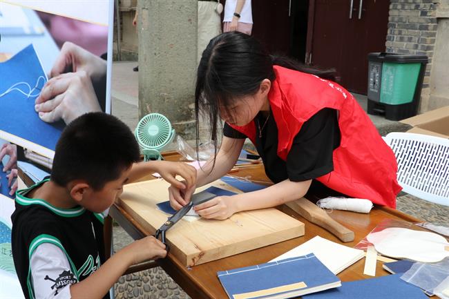 本次活动准备了水印木刻、古籍装帧和剪纸等活态体验,让村民们在轻松和谐的手工氛围里,互相交流,感受非遗传统文化。