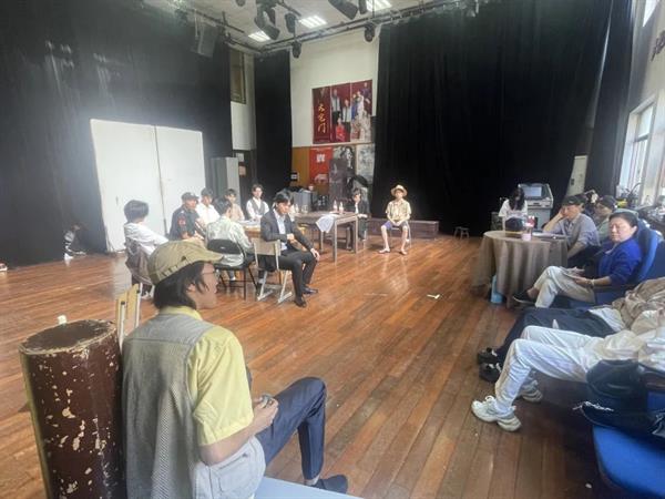 范益松带领学生们开展台词训练。他强调,台词是影响人物性格塑造的重要影响因素,每句台词都将影响到剧目带给观众的观感以及事件体现的明晰程度。他指出,同一句台词能够通过不同的角度、不同的腔调给同台表演的搭档传递不同的能量,让搭档在接受信息的同时能够及时做出相应的反馈,使演绎的事件更加具有戏剧性。现场,范益松还为参演浙艺第16届综合展演季开幕话剧《十二公民》的学生们予以指导,为大家讲解人物分析、人物塑造的技巧。他表示,要走进人物,体验人物真实内心情感,将“情”贯穿人物的表演中,将剧中的每个角色变得鲜活起来。