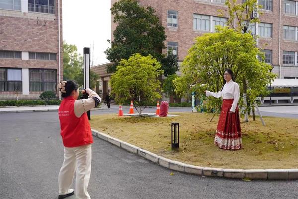 本次摄影服务活动有30余位女老师、公寓管理员、女同学报名,摄影摄像和影视编导专业的志愿者们提供证件照、漫游校园、新中式马面裙三种形式的一对一拍摄,华丽精致的新中式马面裙服装由时尚与传播教研室赞助,活动受到师生们的欢迎。