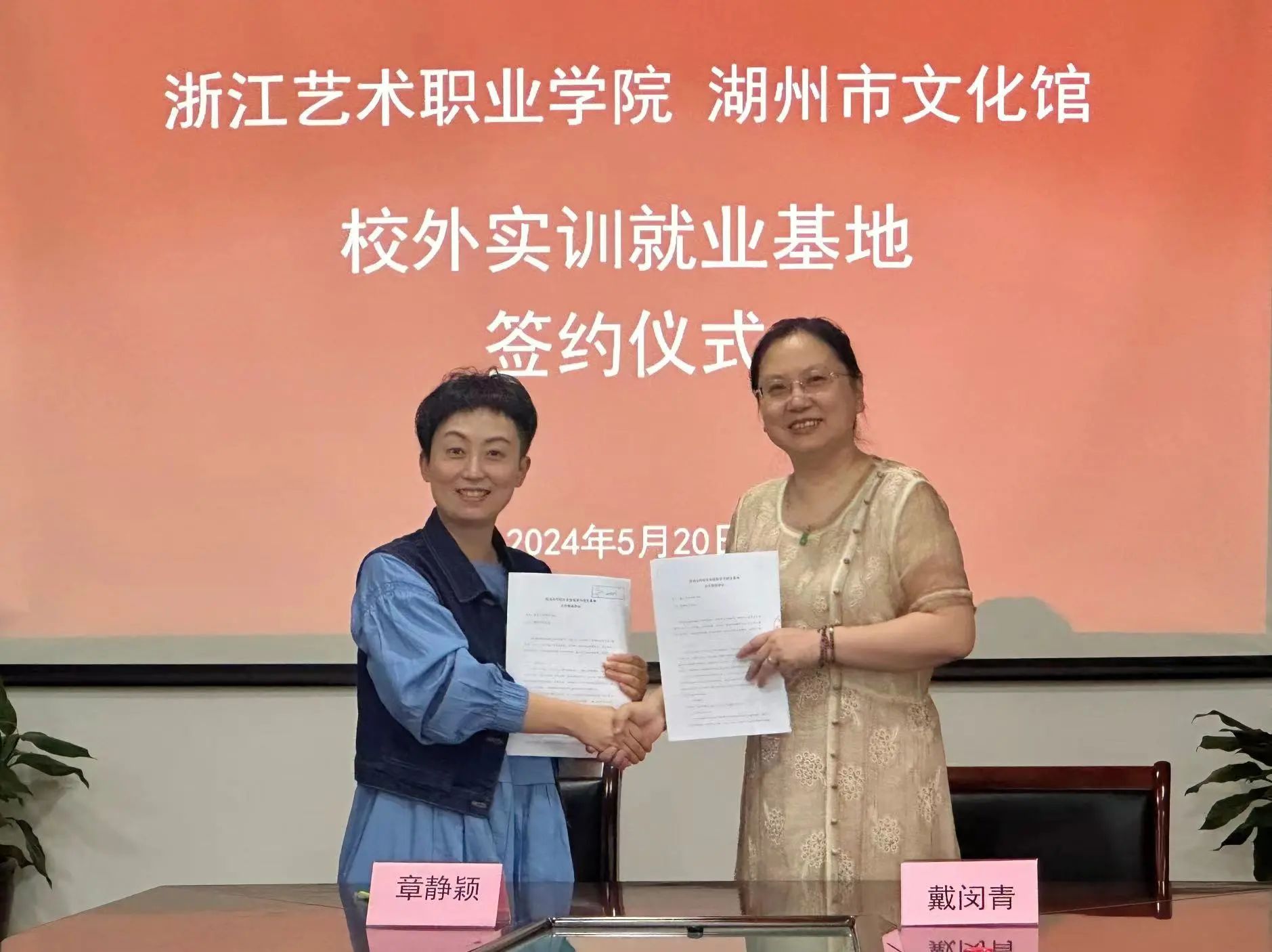 演教学院与湖州市文化馆举行校地合作签约暨校外实训就业基地揭牌仪式