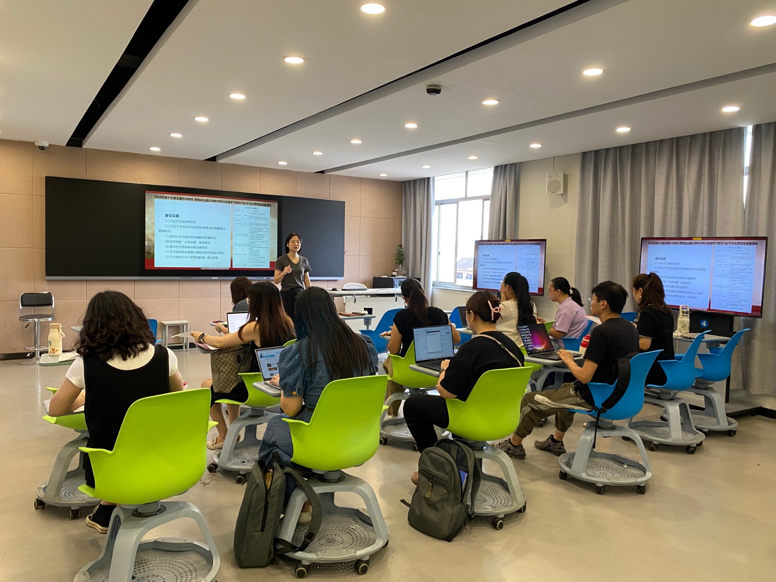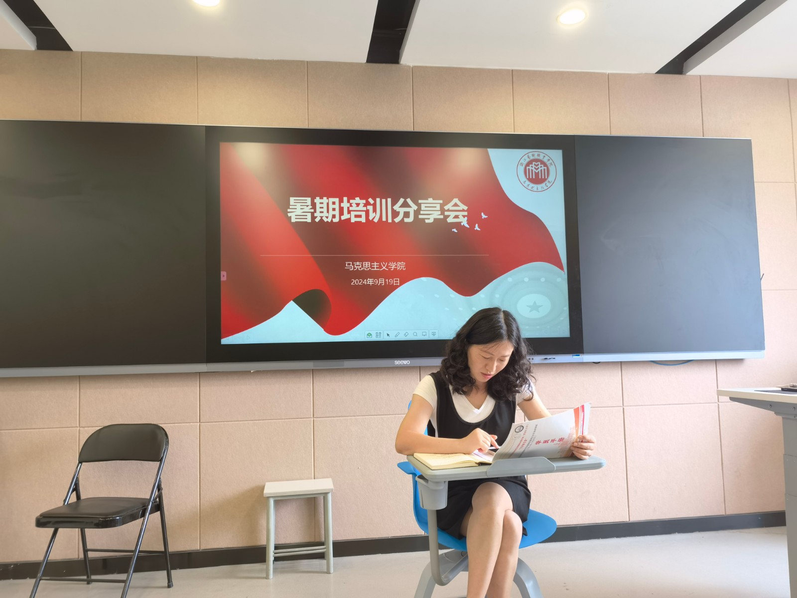 为贯彻落实习近平总书记对学校思政课建设的重要指示和新时代学校思政课建设推进会精神,守正创新推动思政课建设内涵式发展,进一步提升全体思政教师的教育教学能力,9月19日,马克思主义学院在8707教室举办了暑期培训分享交流会,共享思政课教师暑期学习的经验成果,全体马院教师参加。