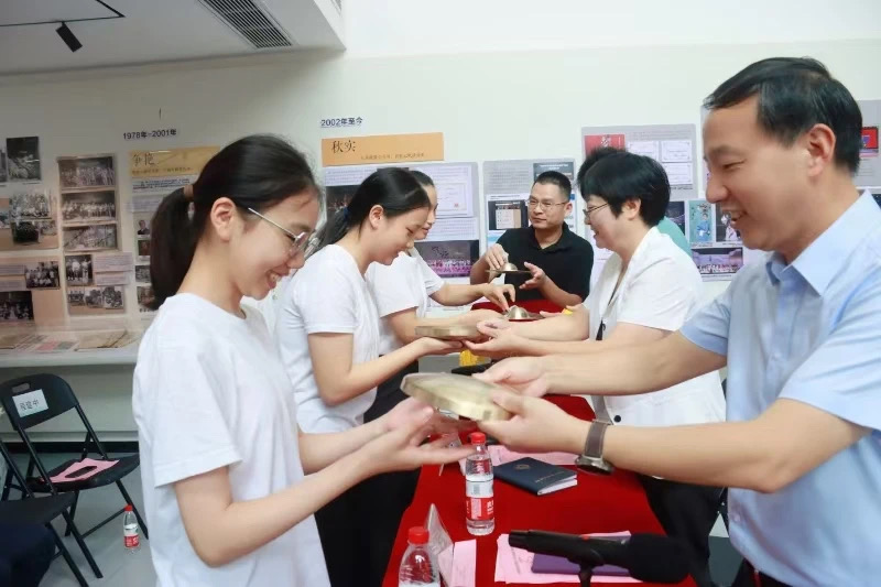 廖宝云、夏开堂、沈军甫为教师代表以及全体松阳班学生赠送了装帧精美的《中国松阳高腔剧目与音乐集成》丛书。