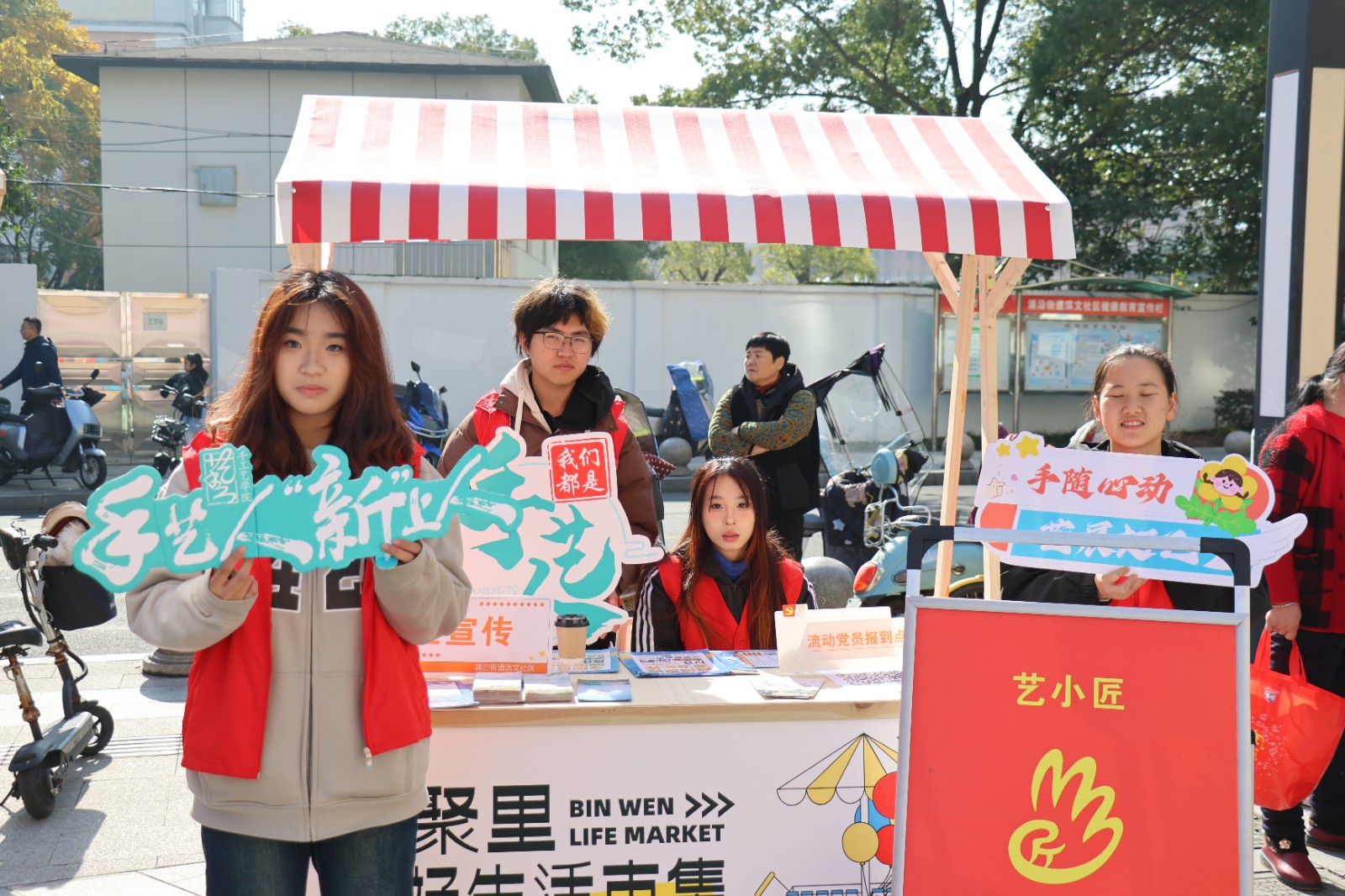 12月15日上午,手工艺学院“巧艺传承,匠心筑梦”艺小匠志愿服务师生团队将非遗传统技艺搬上邻聚里的舞台,在浦沿街道滨文社区为周边居民们打造了一场别开生面的“非遗+文化宣传”手工艺主题集市活动,推动非遗传承发展,开辟文艺赋美校社合作新路径。