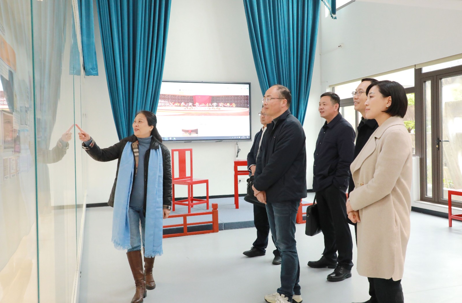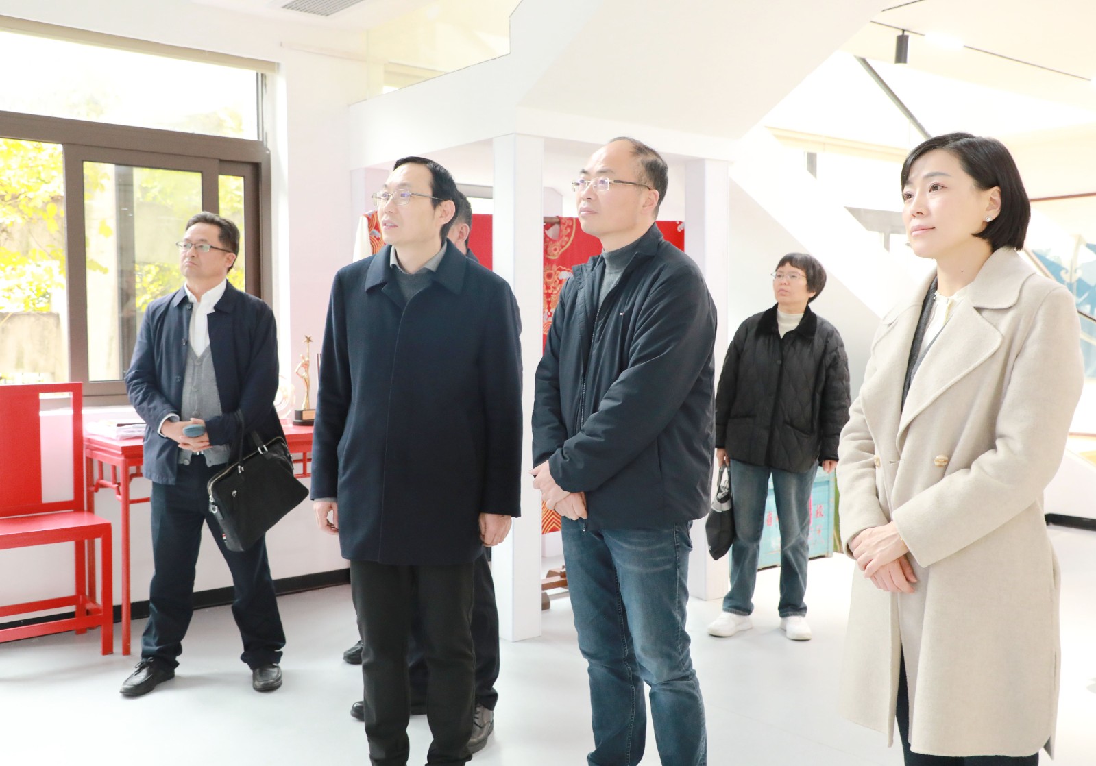 卢关荣一行还参观了越剧教育展示馆、戏曲学院、舞蹈学院,观摩课堂教学,了解专业教学情况。相关职能部门、二级学院负责人陪同调研并参加座谈。