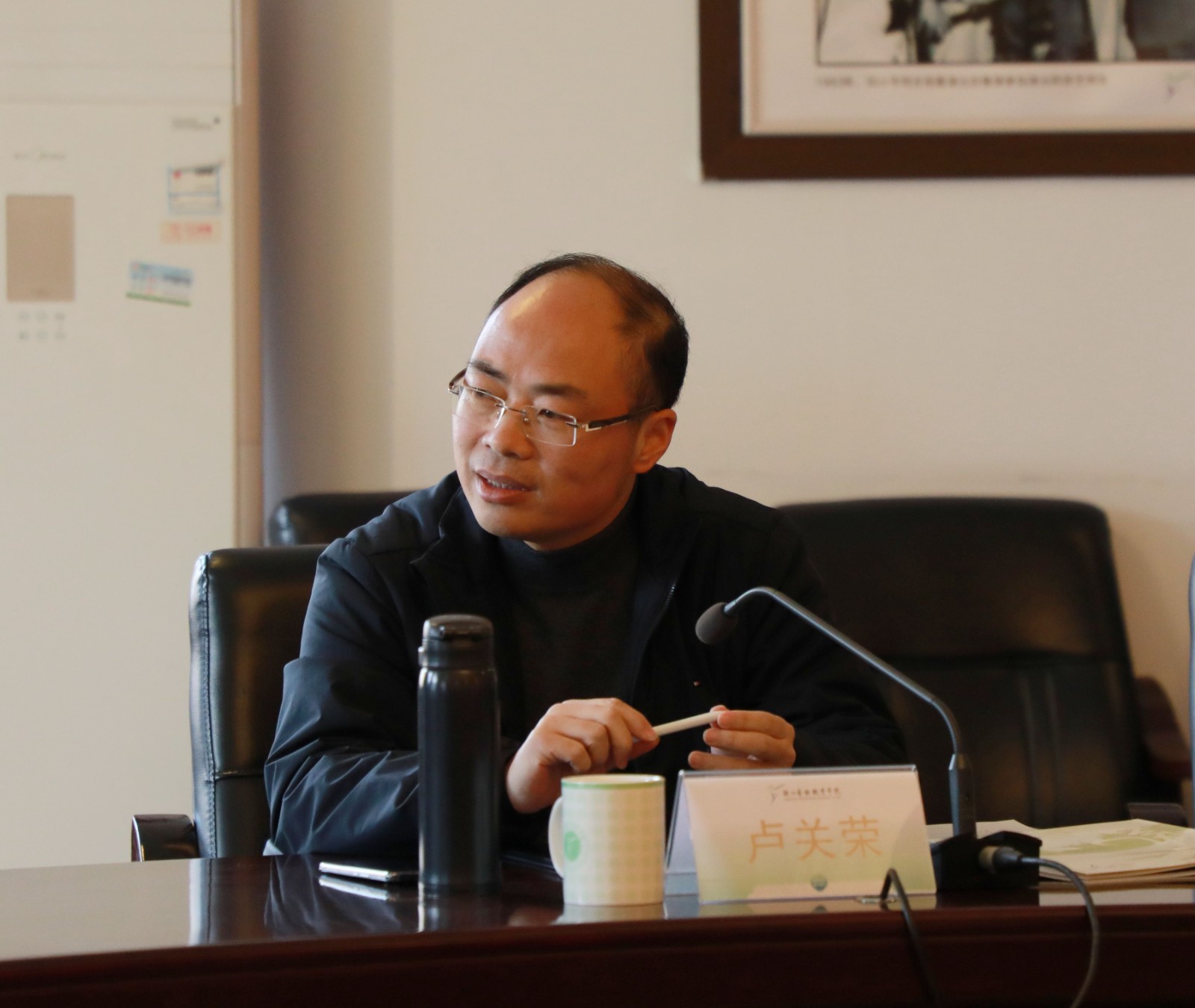 12月6日,磐安县人大常委会党组书记卢关荣一行来校考察。浙江艺术职业学院校长、党委副书记施俊天接待来宾并参加座谈。