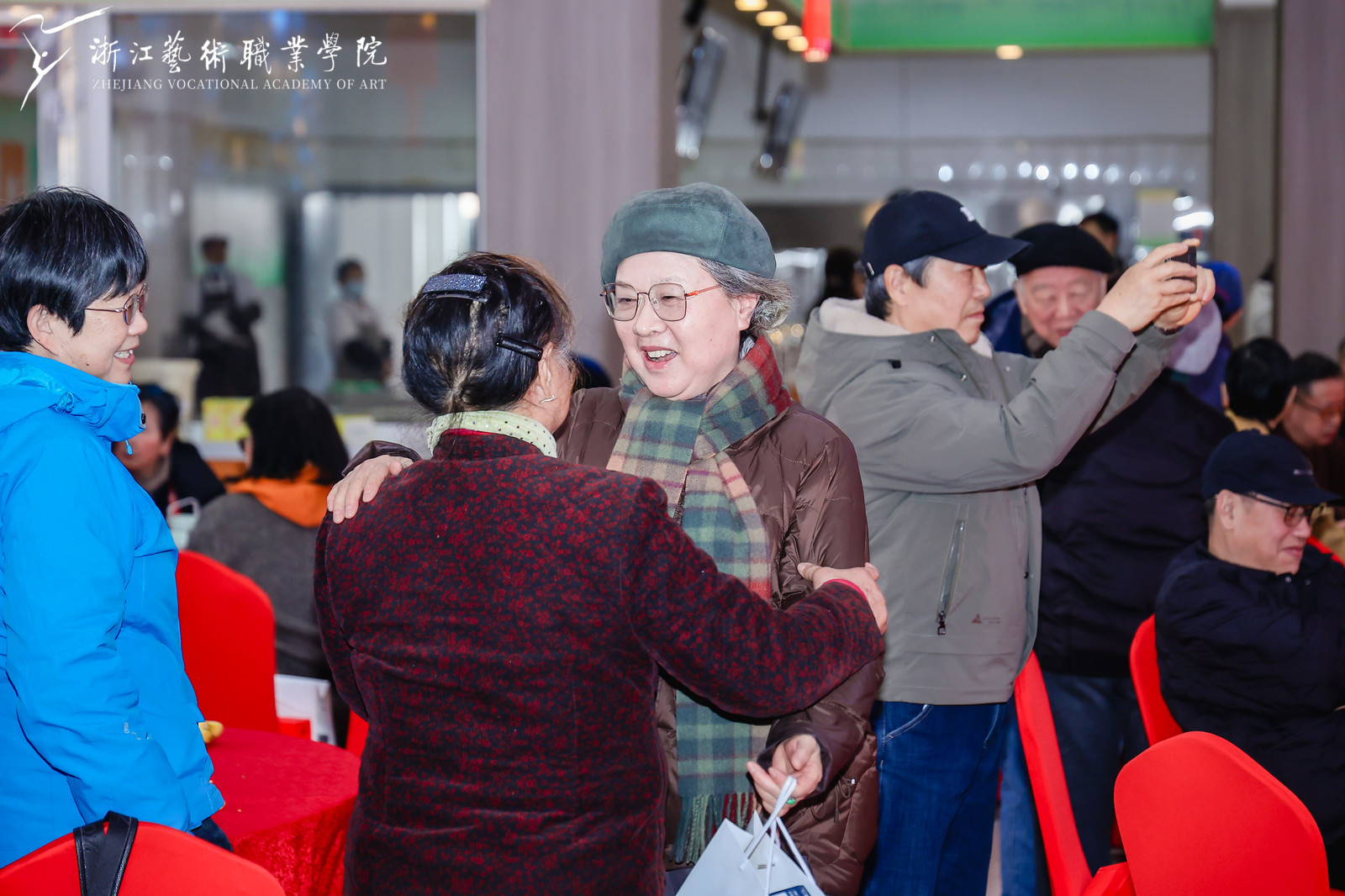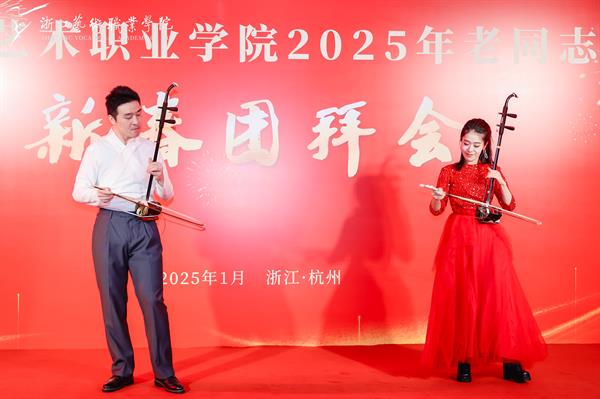 戏曲学院教师闫行卓的京歌《梨花颂》,音乐学院教师吴晓芳的独唱《让我们舞起来》,蒋陈竹、卢伟的二胡齐奏《战马奔腾》,舞蹈学院学生付安然的独舞《小河弯弯》,为团拜会献上精彩纷呈的表演激昂的旋律、优美的舞姿动人的歌声不仅展现了浙艺师生昂扬奋进的风采,也表达了大家对新年的美好憧憬和殷切期望。送福袋、抽奖互动环节,让老同志们收到了新年的幸运和祝福。大家欢聚一堂,共忆美好往事,携手共望新年,喜迎崭新篇章。