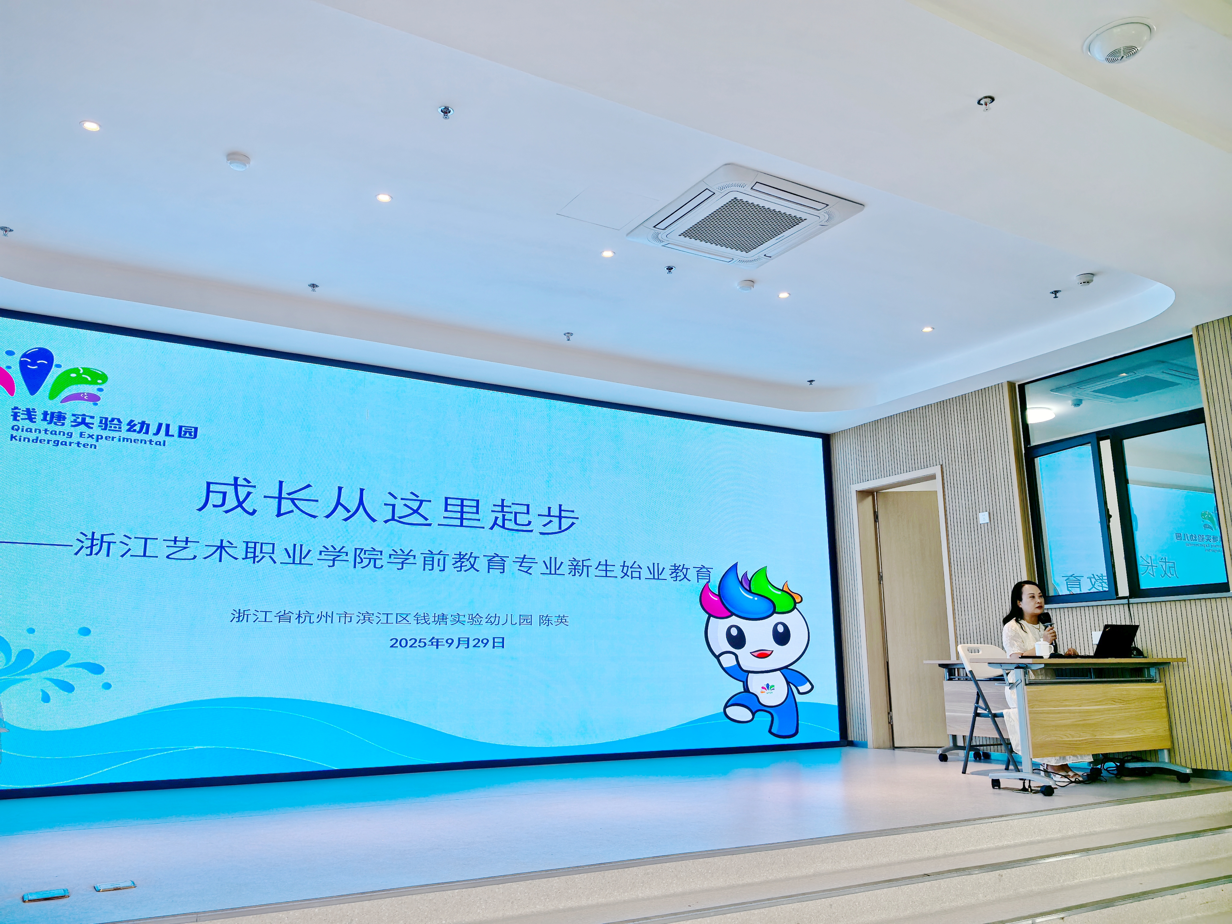 近日,浙江艺术职业学院演艺与教育学院学前教育专业2025级新生始业教育在杭州市滨江区钱塘实验幼儿园新和路分园举行。