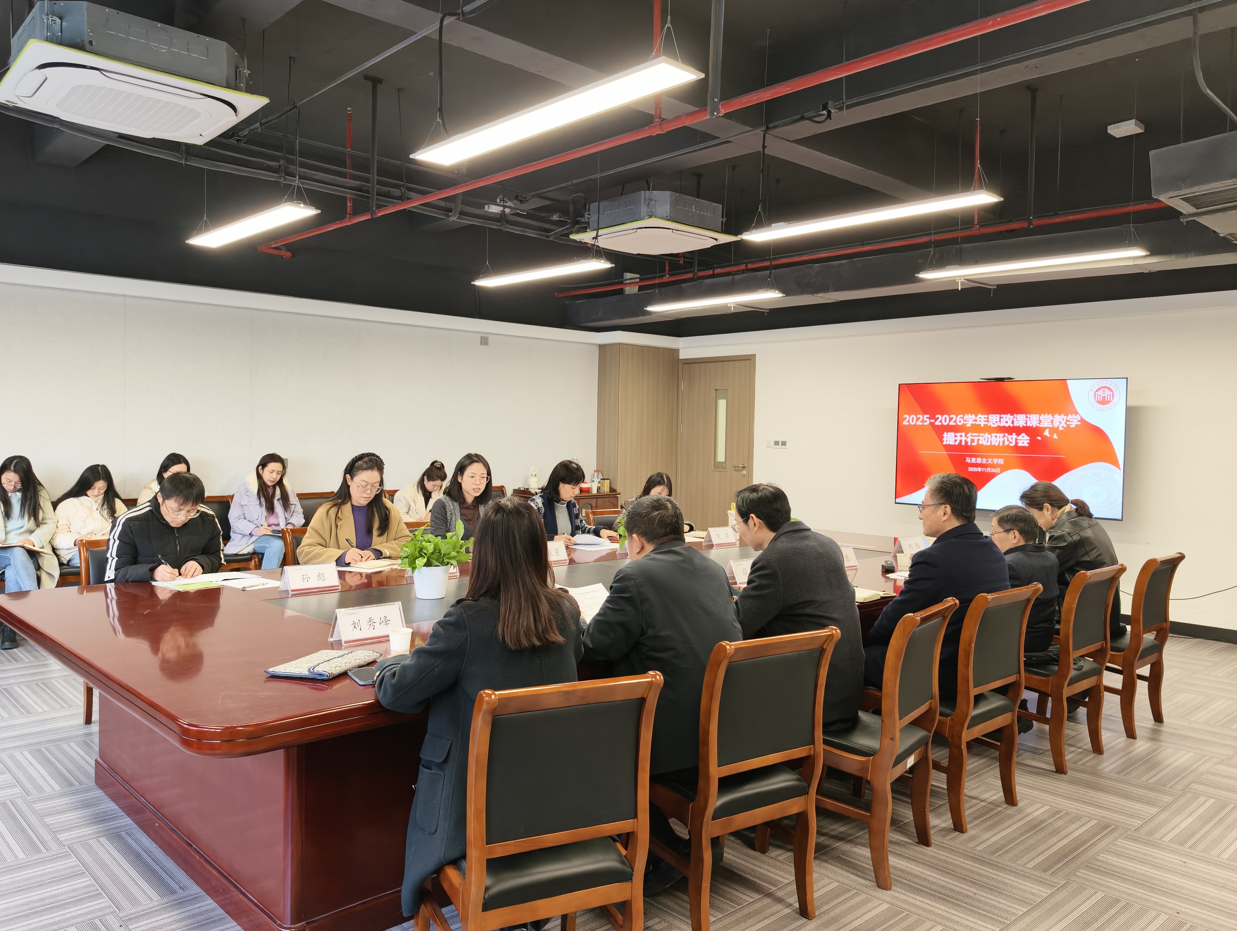 党委书记薛亮指出,从中央到省里再到学校,始终高度重视思政课建设,马院近年来队伍不断壮大、教学成果持续涌现、凝聚力显著增强,“真理的味道・舞台上的思政课”等特色品牌影响力逐步扩大,这些成绩值得充分肯定。他强调,上好思政课是新时代赋予我们的共同课题,上好思政课需要共同破解三大难题:一是破解照本宣科问题,增强教学生动性;二是破解深入浅出问题,提升理论阐释力;三是破解知行合一问题,强化实践转化率。学校将持续在人员配备、激励机制、经费保障等方面给予马院全力支持,为思政教师成长成才、实现自我价值搭建广阔平台。马院要积极组织思政教师参与学校重大项目,充分发挥理论优势,多发声、多引领,不断凝聚青年学生的思想共识。